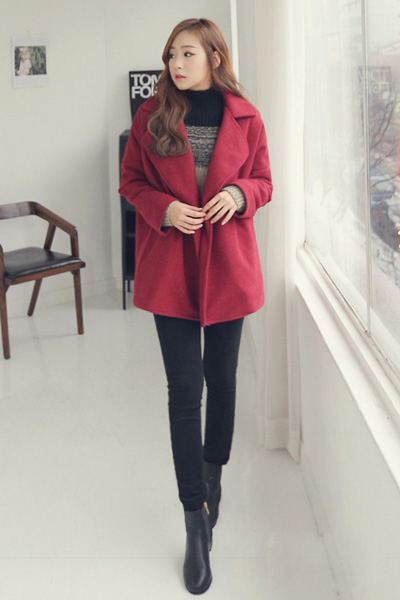 红色大衣宽松的落肩设计,时髦有范,穿起来更加可爱俏丽,经典的翻领设计,大衣长度适中,穿出简约大方的装扮,配毛衣和紧身裤,温暖有型。