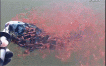 一条母多曼鱼不幸被渔夫钓中,而钓离水面的时候,母鱼身边围绕起上千只红色小鱼,不断张嘴想要把妈妈往水里拉…… 后面,渔夫也被感动到把鱼放回了海里