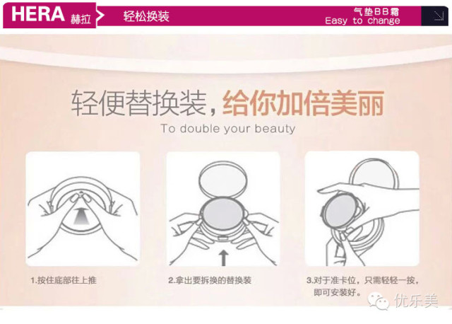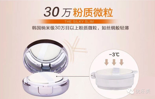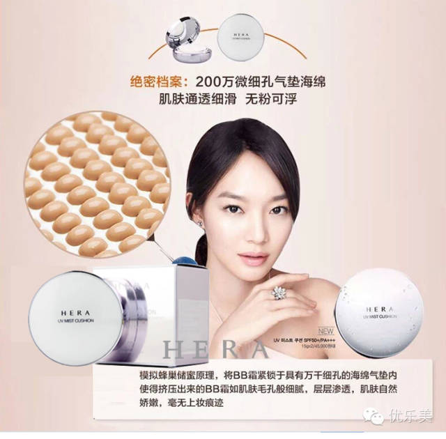 与普通BB霜相比,赫拉气垫BB霜的魅力究竟在哪里呢?它30万粉质微粒与200万微细孔气垫海绵,都让赫拉气垫BB霜更显与众不同,这不仅让BB霜本身丝绸般轻薄,更让BB霜紧缩于具有万千细孔的海绵气垫内,擦拭肌肤时间,层层渗透肌肤底层,让肌肤更显细腻、无粉可浮出、自然娇嫩,毫无上妆痕迹。