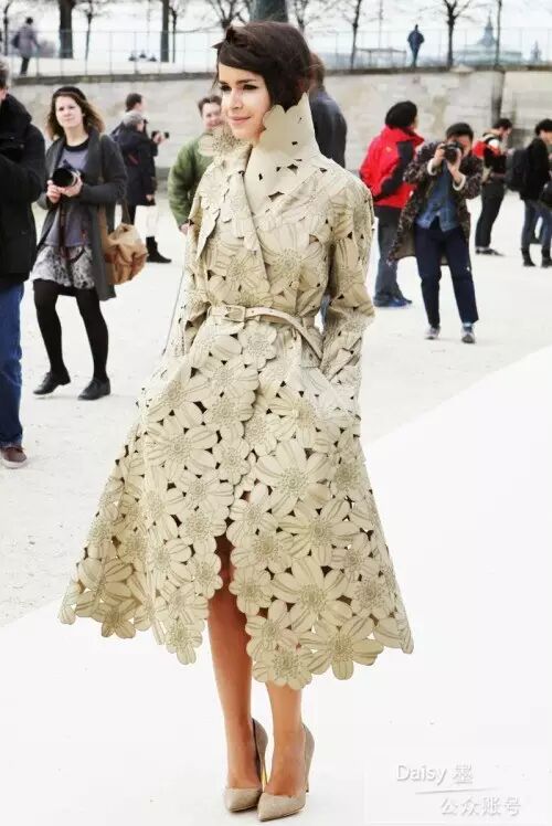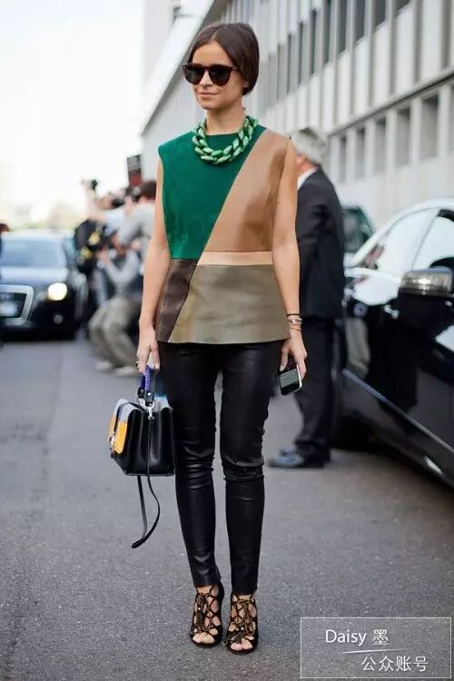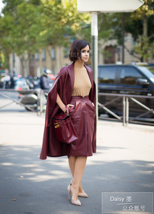 个人感觉她真是超爱皮质的单品,从大衣到半裙到连衣裙甚至到上衣,都有皮革的元素。