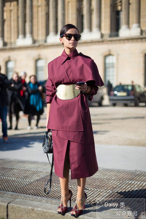 Miroslava Duma 一直都比较偏爱廓形的外套,比如超长款和斗篷,虽然这些款型对于小个子姑娘来说经常会是炸弹,但她用高跟鞋以及腰带化解,最后效果还不错。这足以证明,高跟鞋永远是我们的好朋友,身高不够,鞋跟来凑。