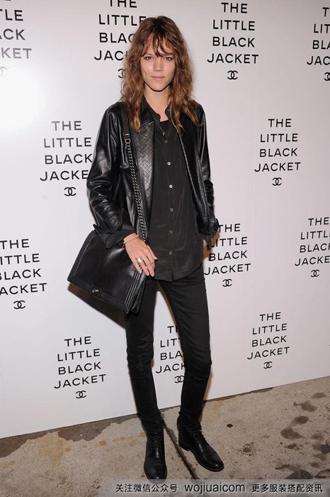 Lou Doillon,这位融合了英伦独立腔调和法兰西浪漫的女人,自信无畏的眼神是她的标志,搭配上她那浓密的刘海,黑色毛衫和背带裤,穿着虽然简单但却透露着一股十足的男孩子叛逆气息。