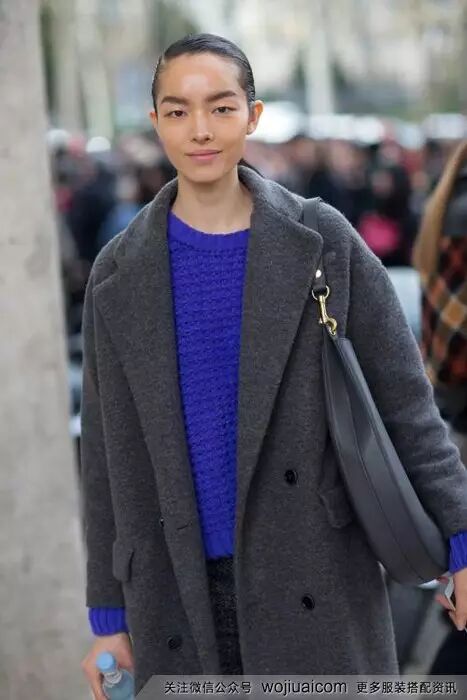 咱们的中国超模孙菲菲,整齐的发髻,刻意画粗的眉毛,灰色的Oversize外套,让人看到了在古典优雅的中国面孔背后,英气十足的一面。