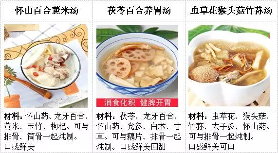 所以一方面我们要“有节制”的吃,另一方面可以喝一些健脾养胃、助消化的养生汤来提高脾胃运化能力,帮助其运化食物。例如:用薏米、山药、党参、莲子、猴头菇、大枣、茯苓、白术、虫草花、甘草等材料熬制的养生汤品就有很不错的效用。薏米健脾渗湿,除痹止泻,清热排浓,健脾养胃效果极佳;山药补脾养胃,生津益肺,补肾涩精;党参补中,益气,生津。治脾胃虚弱,气血两亏,体倦无力。“简单爱养生汤料馆”给大家推荐几款健脾养胃的养生汤: