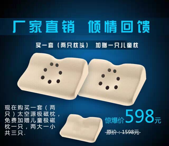 太空源极磁枕一套(两只)原价1598元,现特价:598元(三只)