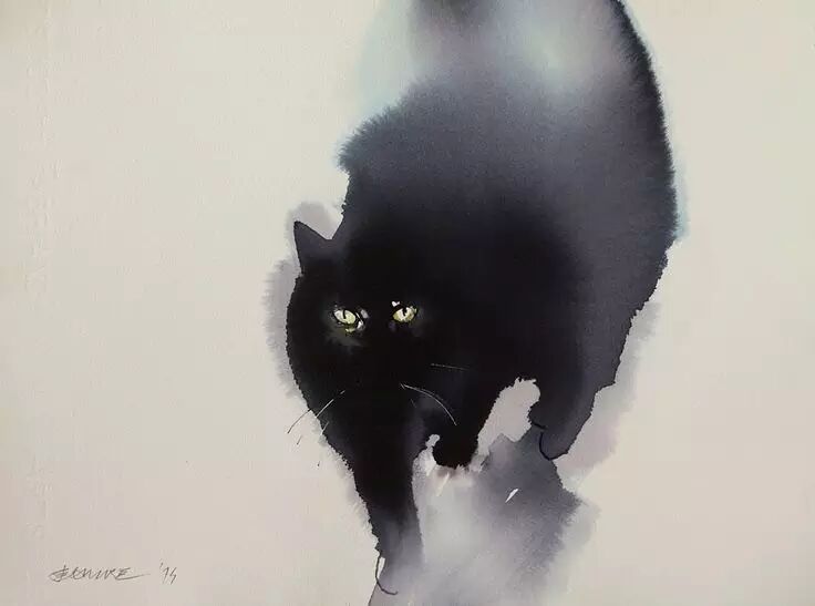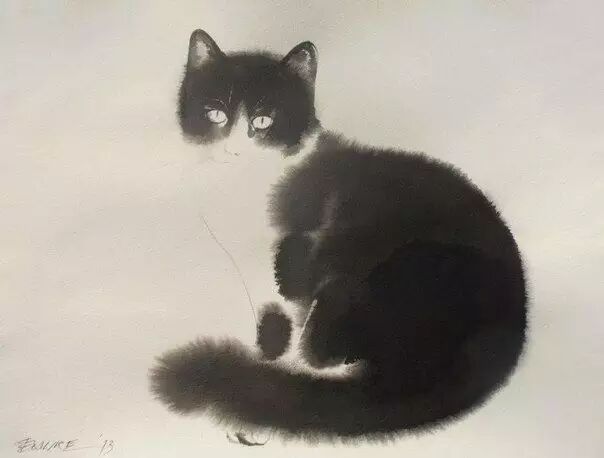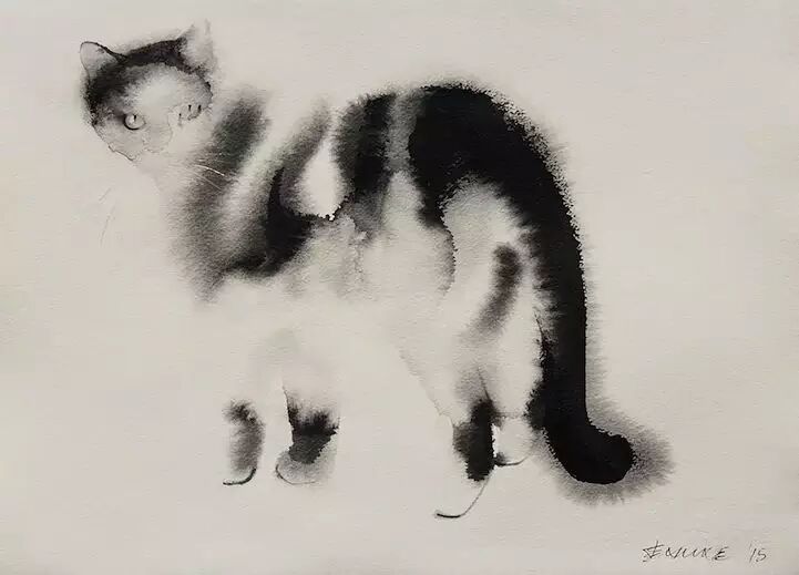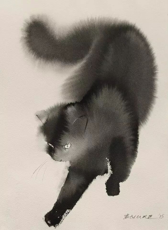 来自塞尔维亚的艺术家,善于用墨水表现出猫咪的黑色蓬松的皮毛,与微妙的动作、情绪变化。神秘而闲庭信步的黑猫在他的笔下来的轻松而充满神韵。