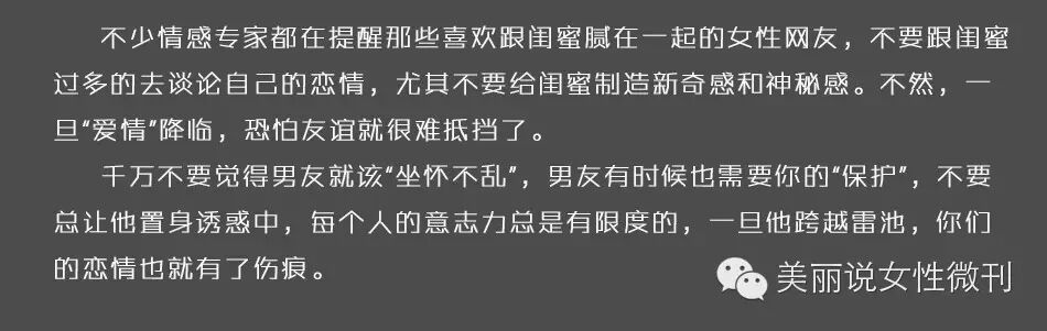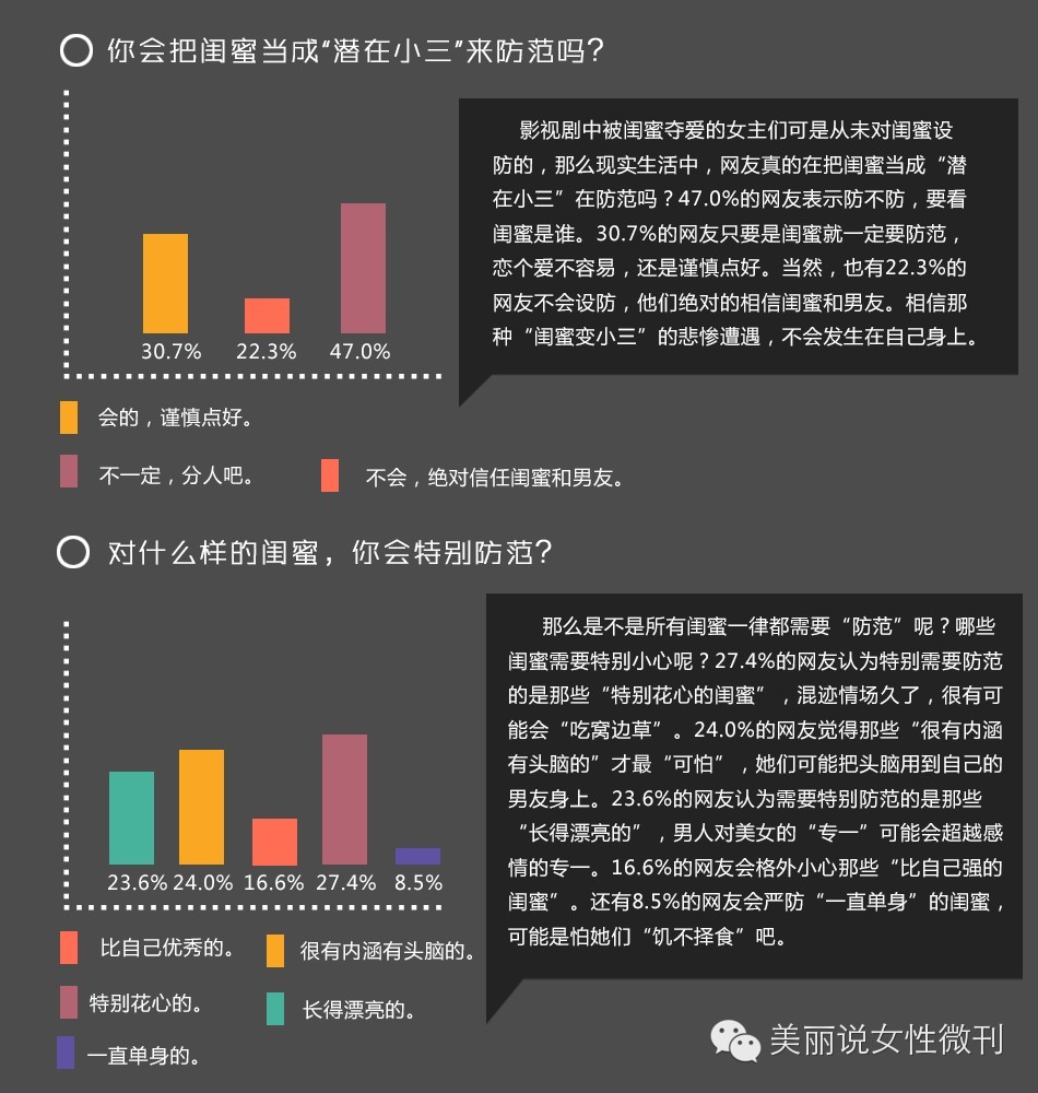 打开任意一本情感刊物,相信你总能看到闺蜜夺男友的悲情故事,如今的热播剧也是,一定要让你最亲近的闺蜜去捅你最致命的一刀。就连微博上都在热传#防火防盗防闺蜜#,难道闺蜜真的是恋情的最大隐患?你也会把闺蜜当成“潜在小三”来防范吗?