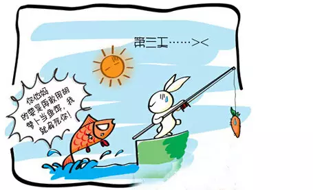 2、第一天,小白兔去钓鱼,一无所获。第二天,它又去钓鱼,还是如此。第三天它刚到,一条大鱼从河里跳出来,大叫:你要是再敢用胡萝卜当鱼饵,我就扁死你