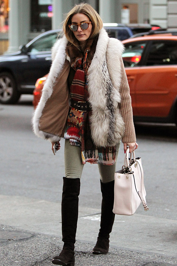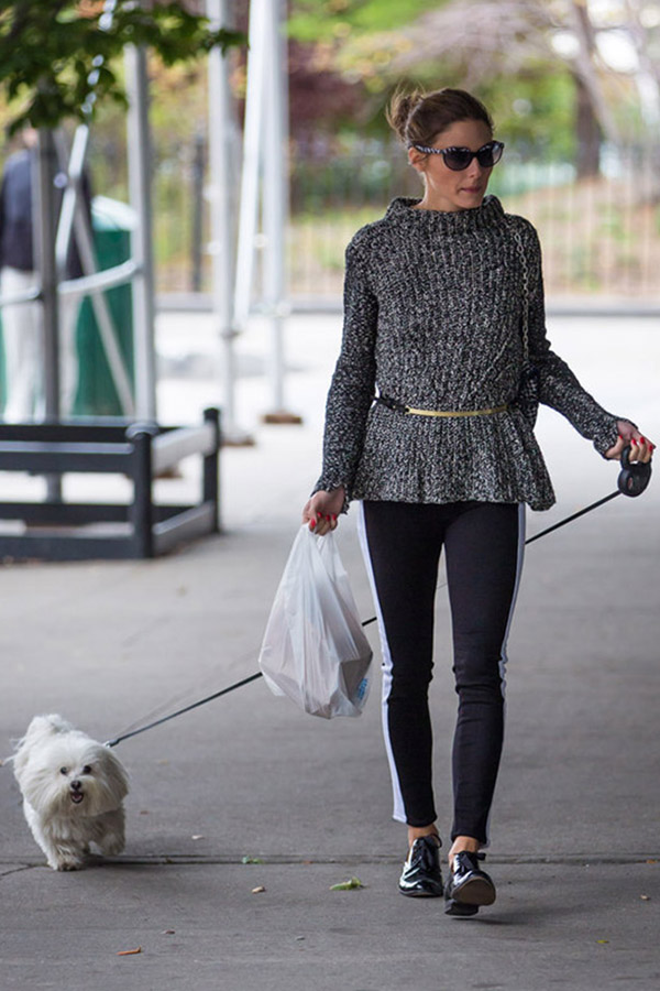 “我休假的时候,总穿着一件毛衣和一条leggings,那是肯定的”――Olivia Palermo
