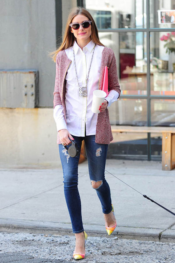 在Olivia Palermo的各种街拍中,我们时常能看到她牵着一只小梗犬或拿着早餐漫步在街边或公园中。即使是在没有任何“时尚活动”的早晨,她也会在着装上花些小心思,时时刻刻做到完美无缺。就像香奈儿所说的那样,“我不理解为什么一个女人可以不好好收拾下自己就离开家,即使是出于礼貌―― 因为你永远不知道在下一个拐角你会遇见谁”。