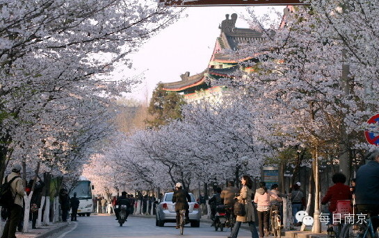 南京林业大学樱花盛开,长约80米的樱花大道人潮涌动,每天吸引赏花者和拍摄者数千人。