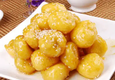 10)倒入炸好的香蕉块均匀的裹上糖泥即可出锅