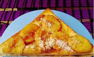 食材:飞饼3张、香蕉适量、面粉适量、蛋黄1个,保你学会。