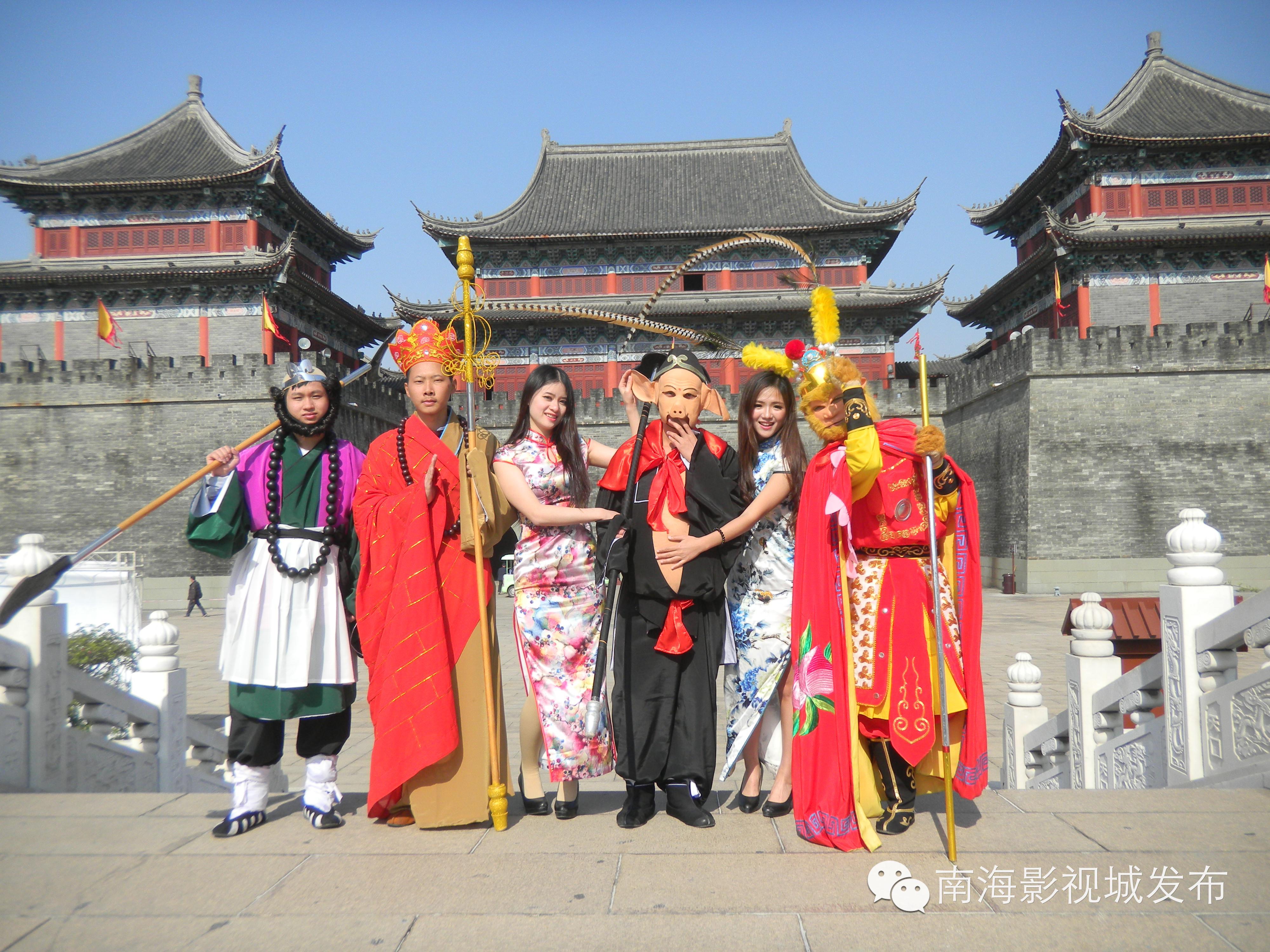 Hello!大家好,我们就是今天的导游,下面请大家跟我们的步伐一起走起中央电视台南海影视城吧,可别掉队了哦!