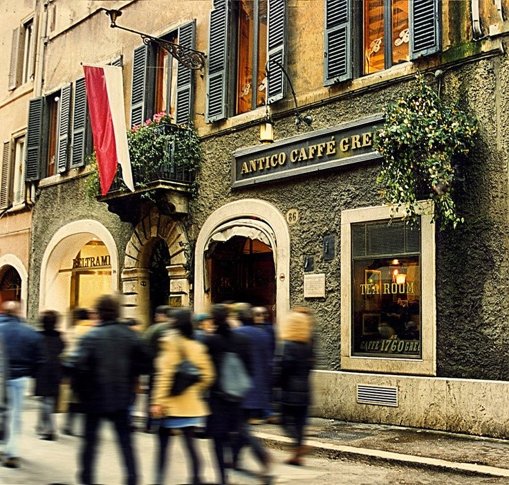 坐落于西班牙广场附近的希腊咖啡馆最早创立于1760 年,而座上客歌德、瓦格纳、门德尔松、李斯特以及卡萨诺瓦等名人更令赫赫有名的希腊咖啡馆倍感自豪。1786年的某一天,歌德穿越意大利来到此地时,便深深地喜欢上了此处的咖啡与独有的氛围,并在此找到了其多部经典名作的创意灵感,其中《塔里夫斯的公主》就是在此完成的。大理石桌、红色的沙发座椅、身穿燕尾服的服务生、无数的镜子,时光倒流的错觉让人仿佛置身于1760年的典雅中。