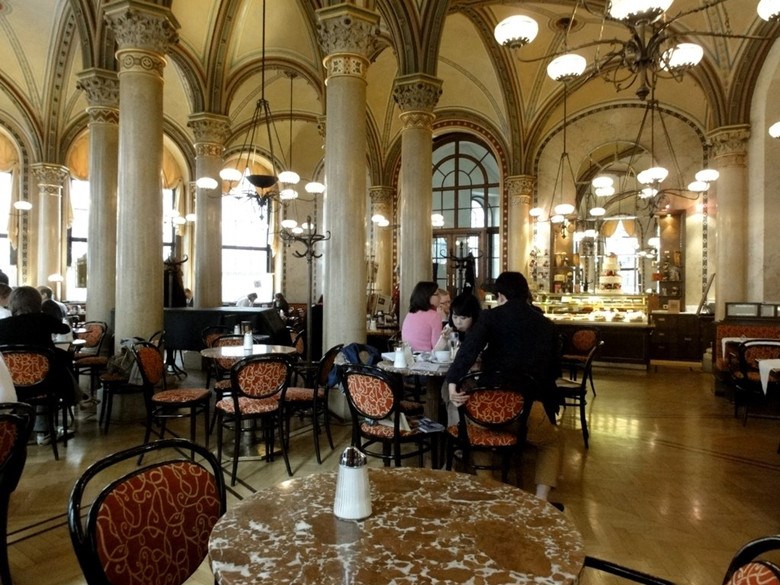 创立于1860 年的中央咖啡馆一直是深受维也纳知识精英们喜爱的一大聚会场所,其中包括雨果、安东?库和阿道夫?卢斯等人。经过1986 年全面装修后依然是维也纳倍受欢迎的咖啡馆,尤其在外地游客中享有极高的声誉。不同于巴黎的露天咖啡座位,中央咖啡馆最吸引人的座位是室内座位,超高的吊顶,复古的水晶灯和古老的欧洲油画。绅士的服务生也会为你介绍当年某位艺术家坐过的座位。