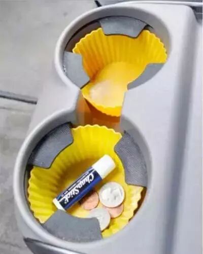 觉得车里的杯托很难打理?放个蛋糕的纸托吧。