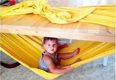 在家DIY小孩都爱的吊床。这里提醒大家注意安全。