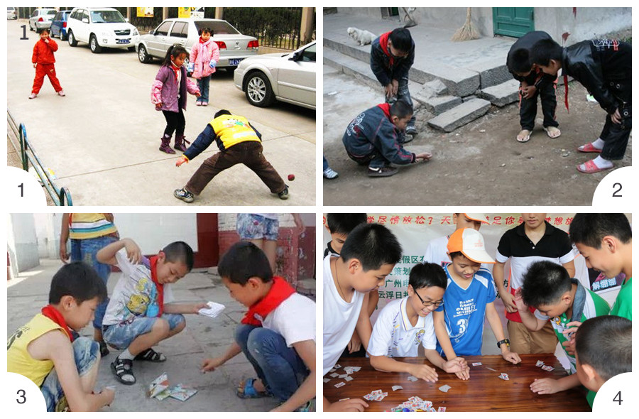 (4)拍公仔(忘记北方的孩子把这个叫什么了,就是一张小卡片,放在地上谁拍翻就归谁,每次都把手掌拍得很痛很痛)