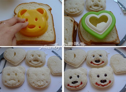 12.用番茄酱和巧克力酱给小熊做上眼睛、鼻子、嘴巴。