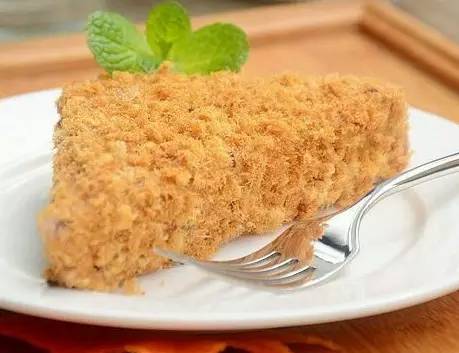 5. 在装有肉松的盘子里均匀的裹上一层肉松即可。