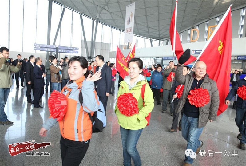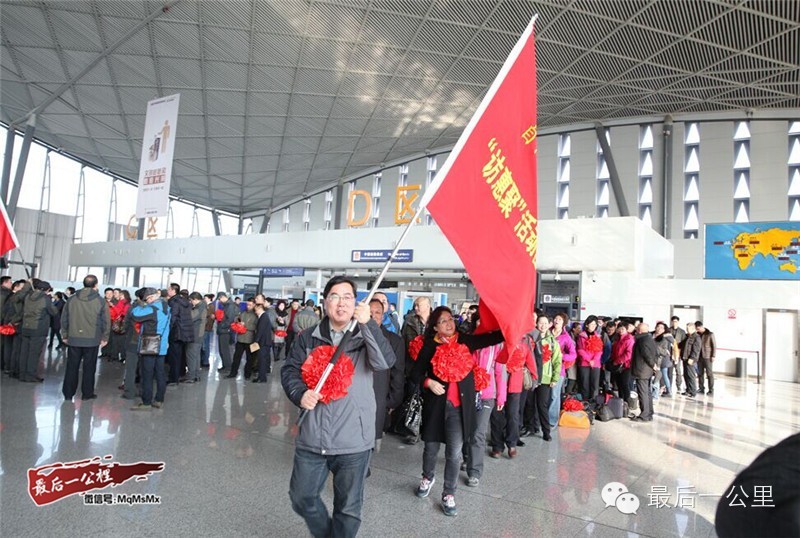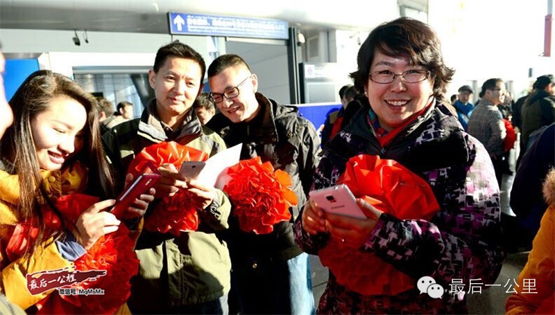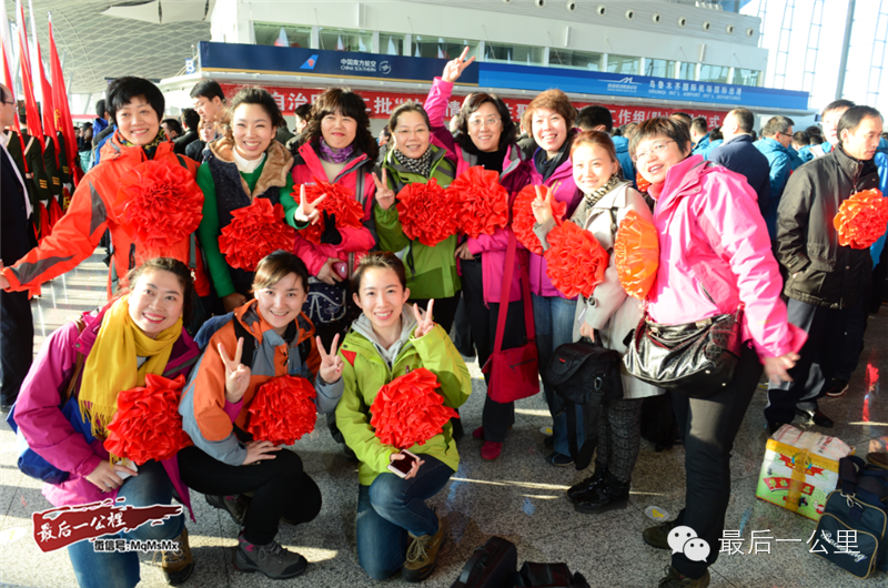 几百人的聚集,场面宏大。每人胸前一朵大红花,心情也都蛮好的。每当看到镜头,大家都会露出甜美笑容、摆出“剪刀手”。要出发了,这些都意味着好运。