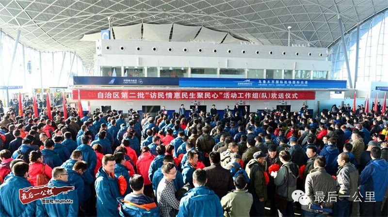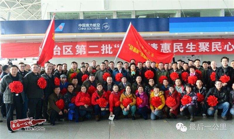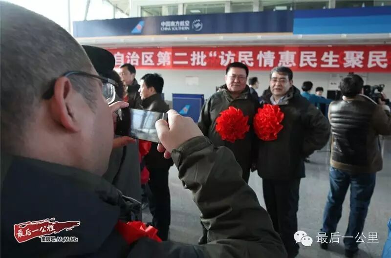距离仪式开始还有1小时10分钟,此时的航站楼里人群熙熙攘攘,在东面的一块空地上,已经到达的住村干部开始佩戴大红花、拍照留念。过往的旅客有些迷惑,驻足观看。“喂,我已经到机场了,再有1个多小时就登机,放心吧。”有的住村干部在给家人打电话保平安,有的则拍了照发个微信回去。