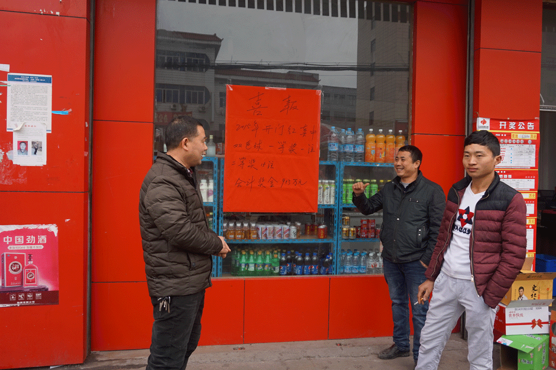 这间店面积不大,二三十个平方米左右,主要经营彩票销售以及烟酒等副食品。店主骆先生高兴地说:“我这里卖出去的彩票,去年和前年都有三个中二等奖。中一等奖,这还是第一次。”