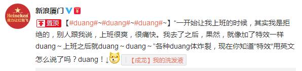 当“Duang Duang Duang”流行之后,各个微博大号和品牌们坐不住了,纷纷“Duang~”了起来,做起了借势营销。