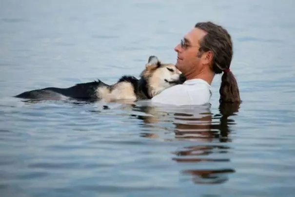 每天傍晚,他就抱着患病的爱犬伫立湖中,因为这样能减轻狗狗的疼痛,给狗狗一个安稳的睡眠。