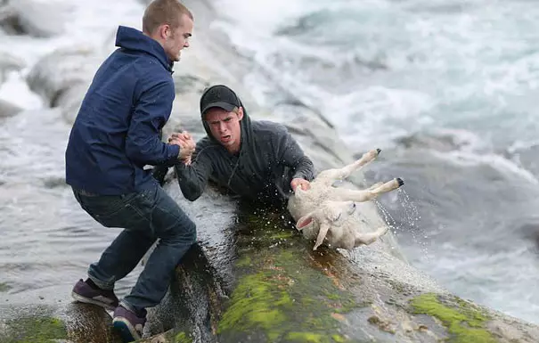 原来在救一只不慎掉进海里的小羊,萌萌哒。