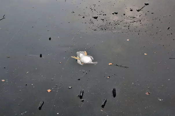 11.一只被冻僵的鸭子,在河面上无人理会。
