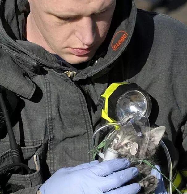 20. 消防员将氧气面罩让给刚从火场救出的小猫,希望小猫能够活下来!