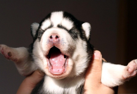 和狼崽比起来,哈士奇小时候就活泼多了,吐舌头的样子萌萌哒!