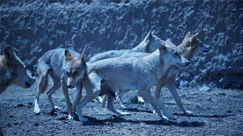 他带了6名助手过来片场,所以这17匹狼都是听英文口令的。他对训狼的总结就是狼不能打也不能惩罚,只能无限地对它们好,给足牛腿肉,才能消除人与兽之间的隔阂,他让演员没事就去狼舍里坐会,不干什么,就是建立信任