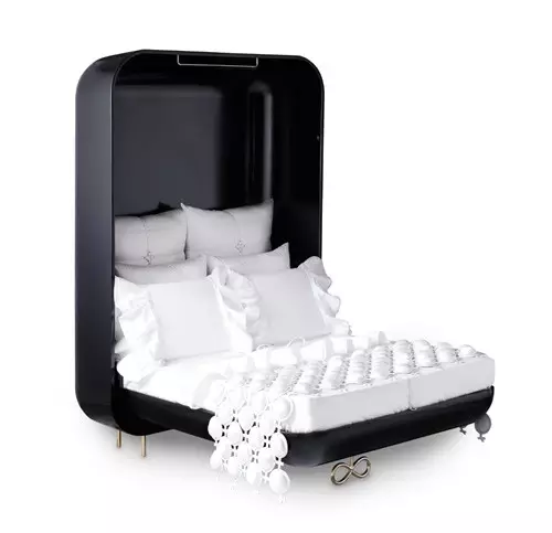 这款优雅的Forever床由斯洛文尼亚设计师 Nika Zupanc设计。床可以折叠成柜子,而且是带锁的柜子。锁上之后的Forever床可以用一个大钥匙打开,这个大钥匙同时也用作一条床腿。床垫和靠垫采用了Dormeo的Octaspring技术。