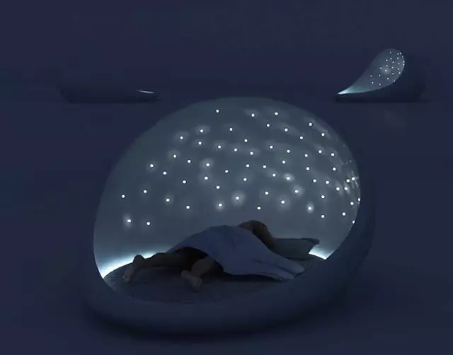 这张外形像一颗鸡蛋的Lomme床由列支敦士登的着名设计品牌Cycle 13在2008年的100% Design London中推出,采用声光疗法,帮助人们睡得更好。