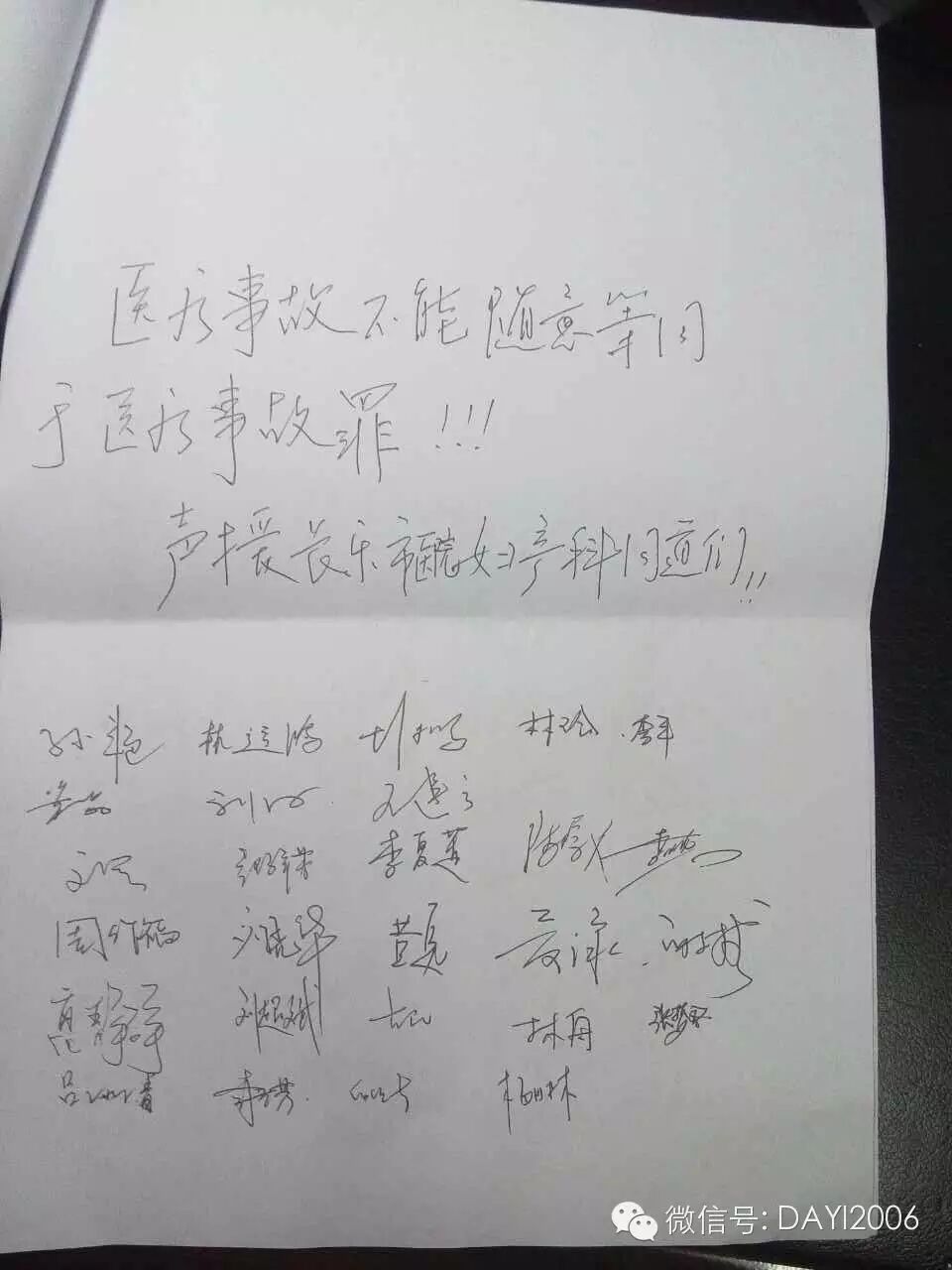 我们每一位医务人员心有戚戚,今天全省妇产科医务人员代表签字声援长乐市医院和李建雪医生,共同呼吁停止医疗纠纷的“刑事诉讼”,停止这种可能对医疗事业带来毁灭性打击的做法。