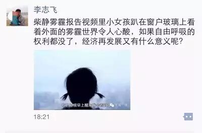 柴静雾霾报告视频里小女孩趴在窗户玻璃上看着外面的雾霾世界令人心酸,如果自由呼吸的权利都没了,经济再发展又有什么意义呢?”