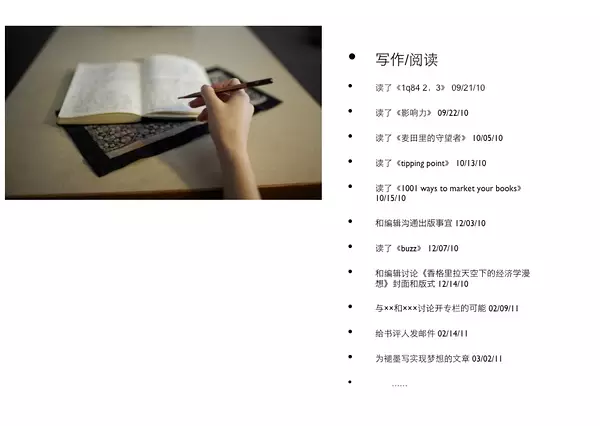 于是我开始记录我在我这三个梦想上投入的所有时间。