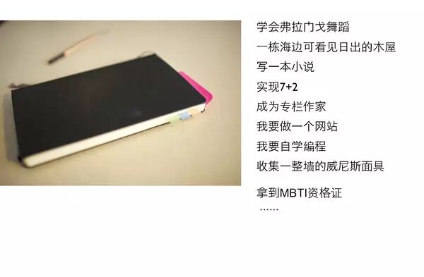 所以,我在笔记本的第一页写下了自己想要实现的所有大大小小或宏伟或琐碎的梦想: 学会弗拉门戈舞蹈,拥有一栋海边可以看日出的木屋,写一本小说,拿到MBTI资格证,成为专栏作家等等等等。