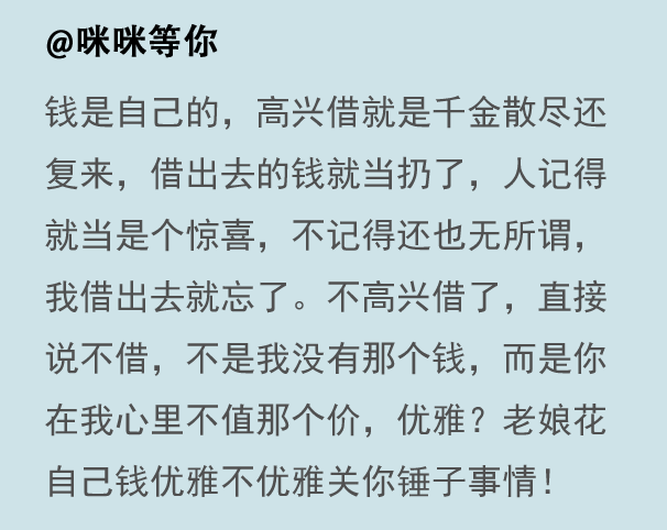 关于借钱这件事,下面这位网友说得挺有道理的。