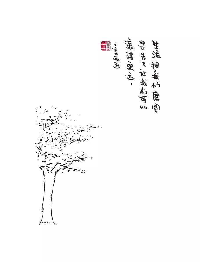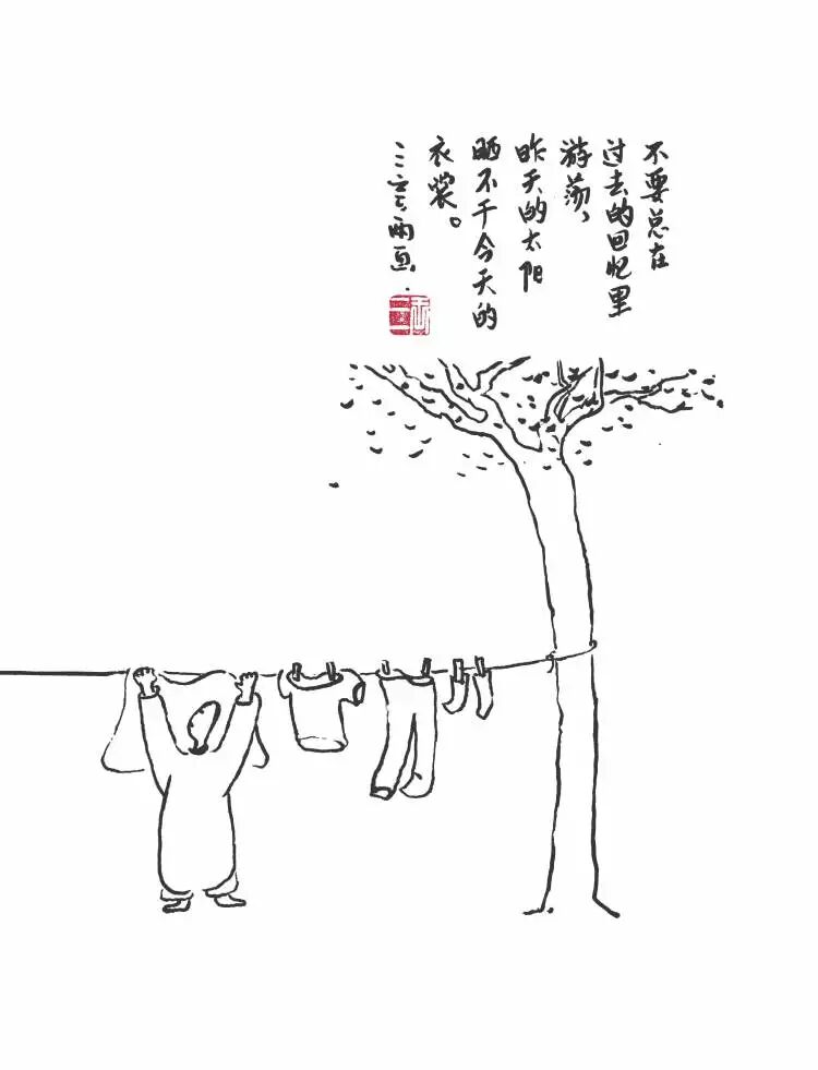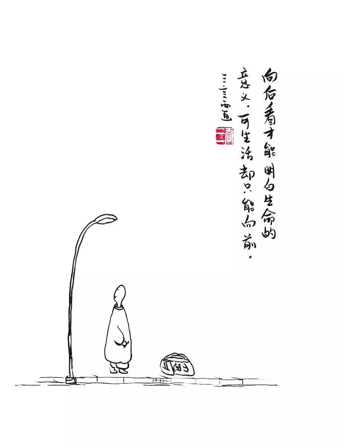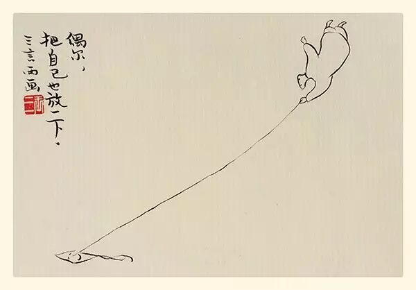 《三言两画》是一本漫画小书。画中着长衫的小人笔触虽简单,却由此获得了一种拙朴恬静的风格,颇有几分丰子恺的味道。画的主题大多是作者儿时玩乐的情景,以及成年后对生活、工作的感悟,时不时带点玩世的调侃。文字多是接地气的话儿,没有大道理,却简单有趣,有些值得玩味的深意,很能击中人的内心。那些在学习、工作中疲于应付的人们,那些被物质世界捆绑却又想不忘初心的人们,也许都可以在这本书中看到自己的影子。