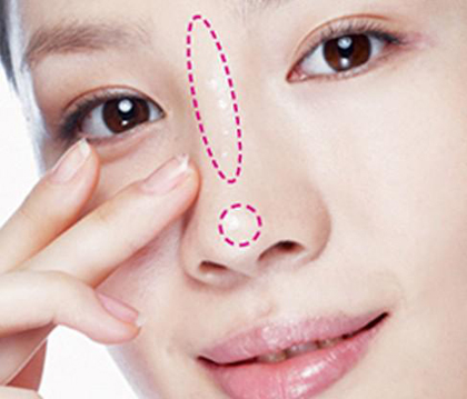 TIPS:注意不同色号的粉底要分别拖在鼻梁和鼻翼上。