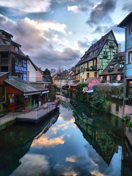 你知道么,《哈尔的移动城堡》中的小镇原型就是法国的科尔马~当年为了拍摄影片,特意以法国东部为中心进行了十二天的取材之旅。科尔马是最浪漫的地区之一,因其境内运河和花船而得名。从桥上可以看到以前船夫和洗衣店在水中的倒影,景色美丽。一座座木屋,使小镇充满着浓郁的阿尔萨斯风情。莱茵河带给科尔马无数水道和池塘,幽静安祥,柔情如水。在这里,会觉得自己站在画里~