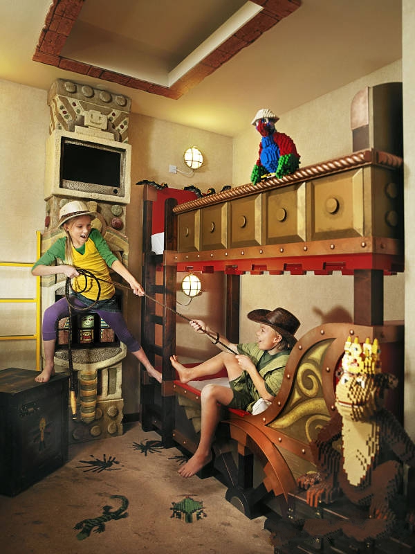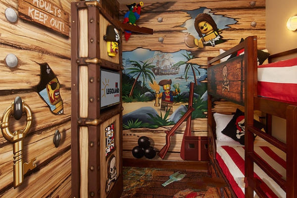 加州乐高乐园酒店于2013年4月开业,这是全球第三家乐高乐园酒店。以乐高积木为主题吸引了许多孩子。每个房间都有独特的乐高主题,海盗、王国或冒险,房间内还有寻宝游戏,让孩子和父母都童心大发。