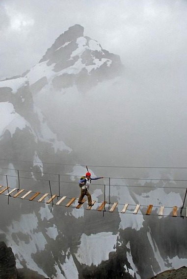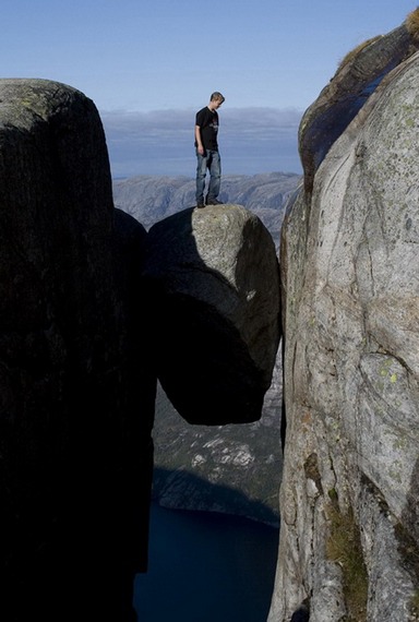 挪威的谢拉格山的奇石,下面就是3000英尺深的峡谷,勇敢者的挑战!↓↓