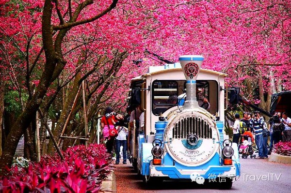 白天漫步在浪漫的樱花步道,重瓣山樱盛放时满树红花撩人,常可见蜜蜂、绿绣眼等穿梭其中,充分展现春的甜蜜温柔气息。更可坐在火车上畅览欧式花园景色,轻松享受如画般的写意。