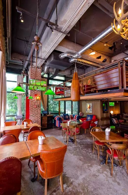 AGOGO的老板是位喜欢vintage的设计师,整家餐厅的装修风格由里到外都洋溢着经典的美式元素。进门处的大橱窗满当当地摆放了代表美国文化的英雄模型、西部牛仔和哈雷摩托的配件。