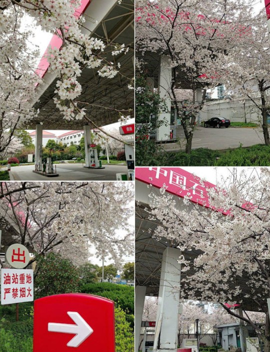 都说浦西有上海最美公交站,其实浦东也有上海最美的加油站。一到樱花开放的时节,加油站两旁盛开的樱花树树影斑驳,落英缤纷。到此停歇的车主们看到漫天的樱花飘飞,也仿佛被一阵春风吹拂心头。